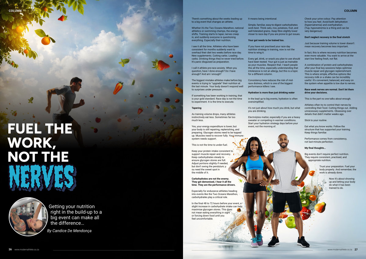 Whether it’ s the Two Oceans Marathon, national athletics or swimming champs, the energy shifts. Training starts to taper, nerves creep in, and suddenly everyone is questioning everything. Especially their nutrition.