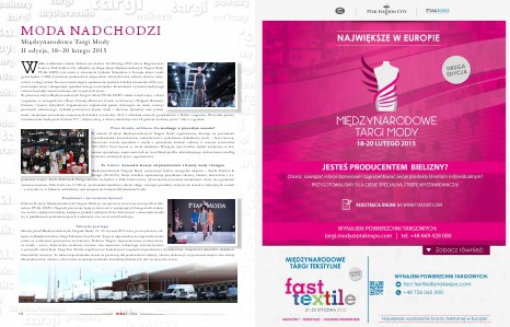 Miesiąc przed Międzynarodowymi Targami Mody, 21- 23 stycznia 2015 roku, po raz pierwszy odbędą się Międzynarodowe Targi Tekstylne Fast Textile. Targi są odpowiedzią na zapotrzebowanie