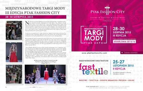najlepszych polskich i zagranicznych producentów, a także handlowców oraz modowych specjalistów. Już od 28 sierpnia 2015 roku Ptak Fashion City zaprasza na Międzynarodowe Targi Mody – imprezę o ugruntowanej renomie i tradycji, gromadzącą każdorazowo tysiące kupców z całego świata.