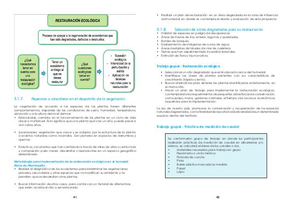 • Hacer un plan de trabajo para implementar la restauración ecológica, contemplando los requerimientos de pequeñas obras físicas de conservación, como zanjas, muros, gaviones o terrazas, el tiempo y los recursos económicos requeridos para la implementación.