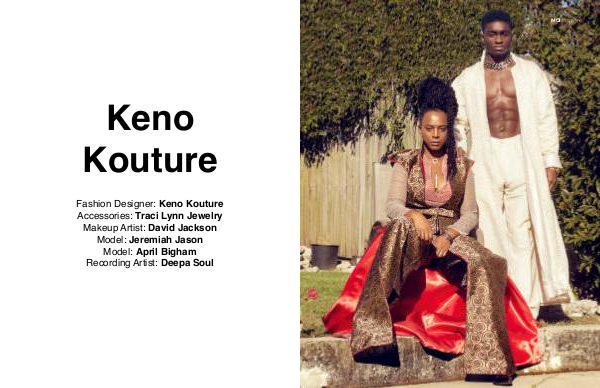 MOI magazine Keno Kouture Fashion Designer: Keno Kouture Accessories: Traci Lynn Jewelry Makeup Artist: David Jackson Model: Jeremiah Jason Model: April Bigham Recording Artist: Deepa Soul