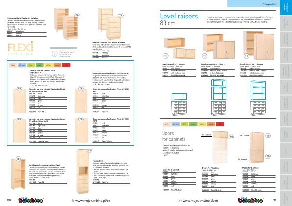 Level raiser for narrow cabinet Flexi Thanks to level raiser you can create a high cabinet , which will also fulfill the function of office furniture . Doors in customized sizes are also available in 8 colours . Made of laminated chipboard in a birch tone ( thickness : 18 mm ), with ABS edge banding .