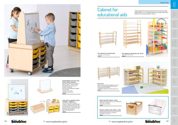 Level raiser for cabinet for plastic containers – organiser 4 Level raisers for cabinet for plastic containers . Made of laminated chipboard in a birch tone ( thickness : 18 mm ), with ABS edge banding . 4 compartments allow storage of games , educational materials and art and craft accessories .