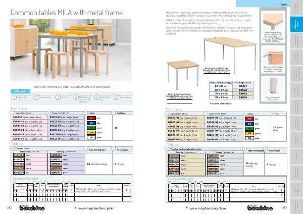 1 Shape of the 2 Frame colour : Feet type tabletop