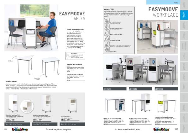 Tabletop made of CDF ( 12mm thick ). Resistant to moisture , splashes of water , stains , and chemicals . Hygienic and easycare , resistant to scratching and abrasion . Flammability class : B-s2 , d0 according to EN 13501 . Metal frame , diam . 32 mm , with round legs . Wheels make it easier to move the table . Frame is fully welded , that provides particular stability