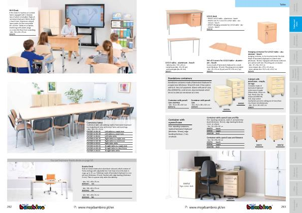 Container with a pencil case and file Free- standing containers , made of laminated chipboard ( thickness : 18 mm ), edge banding thickness : 2 mm , on wheels .