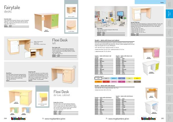 Quadro desk left Desk made of laminated chipboard in a maple tone ( thickness : 18 mm ), with colorful elements made of foiled MDF plate ( thickness : 18 mm ). Cabinet equipped with lock and hinges allowing the door to open 180 degrees .