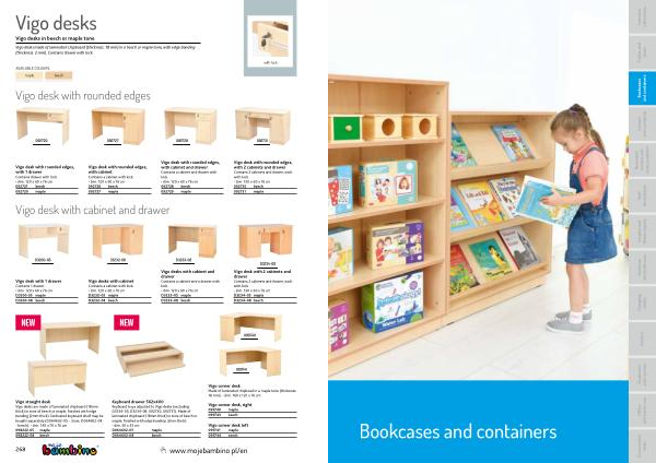 Vigo straight desk Vigo desks are made of laminated chipboard ( 18mm thick ) in tone of beech or maple , finished with edge banding ( 2mm thick ). Dedicated keyboard shelf may be bought separately ( D064602-05 - clone , D064602-08 - beech ). • dim . 140 x 70 x 76 cm 098222‐05 maple 098222‐08 beech