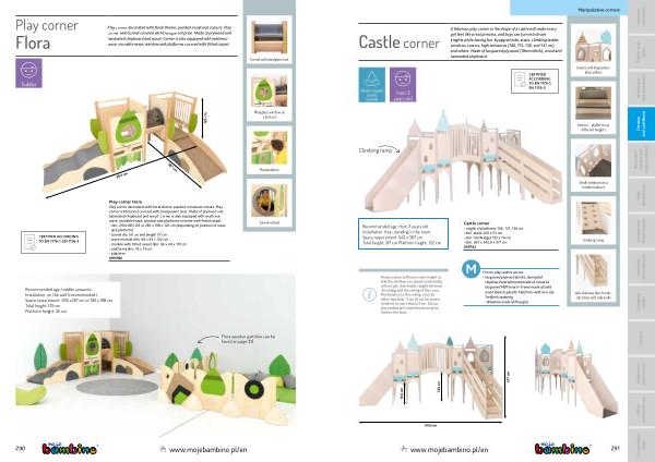 A fabulous play corner in the shape of a castle will make every girl feel like a real princess , and boys can turn into brave knights while having fun . Equipped with , stairs , climbing ladder , windows , towers , high entrances ( 100 , 115 , 130 , and 141 cm ), and others . Made of lacquered plywood ( 18mm thick ), wood and laminated chipboard . |