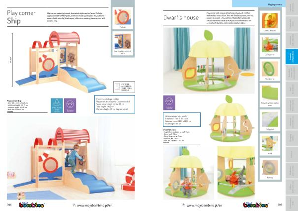 Play corner with various attractions will provide children with endless hours of fun . They will find bead mazes , mirrors , sensory elements – fur , porthole . Made of plywood with colorful elements made of MDF plate . Foam elements are covered with durable vinyl and fire resistant fabric .