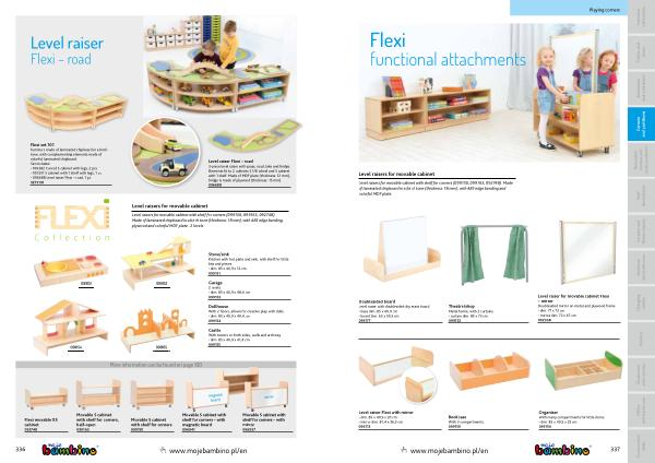 Level raiser Flexi – road 3-piece level raiser with grass , road , lake and bridge . Elements fit to 2 cabinets S 1 / 8 wheel and S cabinet with 1 shelf . Made of MDF plate ( thickness : 12 mm ), bridge is made of plywood ( thickness : 15 mm ). 096688