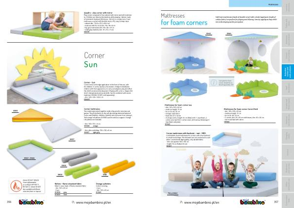 Corner mattresses Two mattresses joined together make a big area for exercises and games . They fit perfectly to the soft decorating elements fastened to the wall ( 196003 , 196004 , 196005 ) which prevent from hitting it . Soft orange roll pillows ( 101081 ) can be used as a support . Orange roll pillows not included .