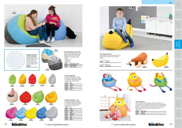 Sensory cushions Soft , comfortable animal-cushions in bright colours make every room brighter and encourage children to play . Filled with polystyrene granulate , so they can adaptd to any shape of the body . Covered with durable , non-phthalate vinyl , easy to keep clean . They make a nice spot to play for children . Have a lot of sensory elements .