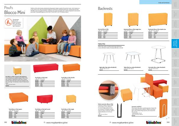 The Blocco Mini series of seats and backrests with geometric shapes is perfect for preschool rooms , in the cloakroom or in the common room . They can be freely configured . The furniture is upholstered with wear-resistant polyester fabric ( 100,000 cycles ) and equipped with low , round legs . The construction of the crate is made of chipboard connected with sawn timber . Flammability approval : BS EN 1021 – 1 , BS EN 1021 – 2 , BS 7176 Medium Hazard .