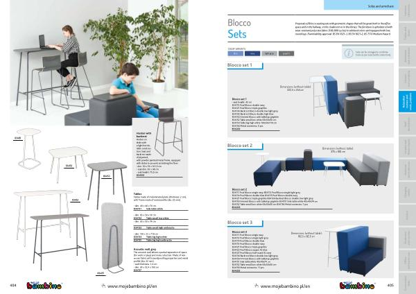 Tables Tables made of melaminated plate ( thickness : 2 cm ), with frame made of metal profile ( dia . 22 mm ). |