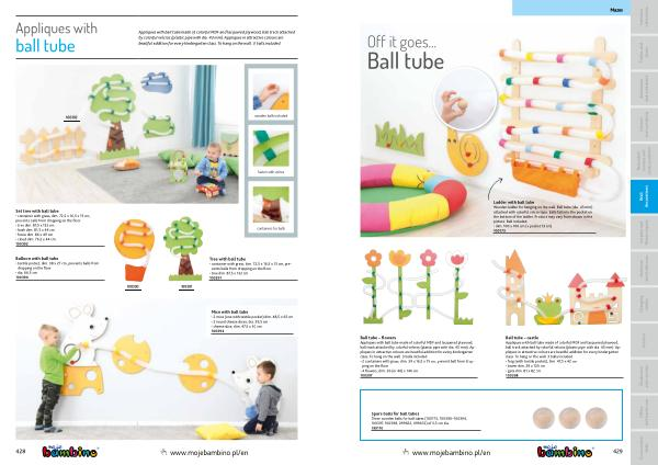 Ball tube – flowers Appliques with ball tube made of colorful MDF and lacquered plywood , ball track attached by colorful velcros ( plastic pipe with dia . 43 mm ). Appliques in attractive colours are beatiful addition for every kindergarten class . To hang on the wall . 3 balls included .