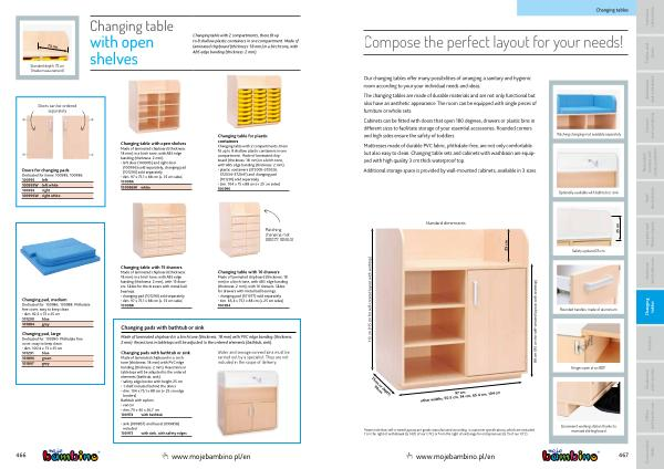 Our changing tables offer many possibilities of arranging a sanitary and hygienic room according to your your individual needs and ideas .