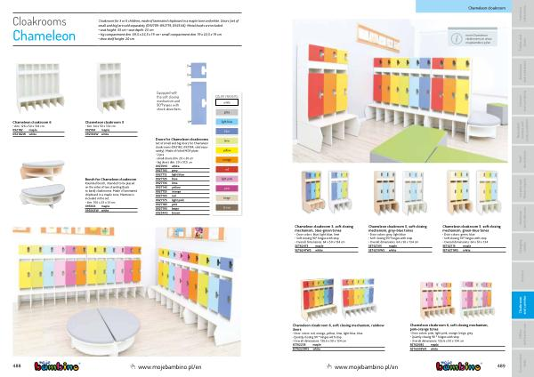 Bench for Chameleon cloakroom Rounded bench , intended to be placed on the sides of two standing ( back to back ) cloakrooms . Made of laminated chipboard in a maple tone . Mattress is included in the set .