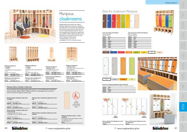 Elegant and funcional cloakrooms , made of laminated chipboard in a maple tone . Equipped with shelf , space to stick a mark and compartments with hooks for clothes and sacks . Openwork shelf for shoes simplifies keeping cloakroom clean . It can be equipped with colorful doors made of MDF plate ( 100052 – 100057 , 100830 and 100955 , sold separately ). Colour of the doors allows to mark space for different children groups .