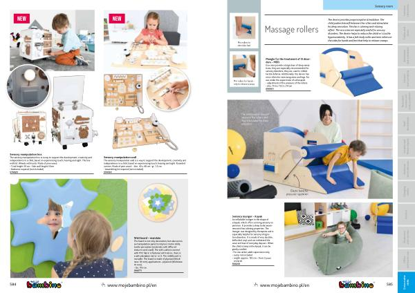 The device provides proprioceptive stimulation . The child pushes himself between the rollers and stimulates his deep sensation . This has a calming and relaxing effect . The exercises are especially useful for sensory disorders . The device helps to reduce the children ‘ s tactile hypersensitivity . It has a full-body roller and mini rollers on the sides for hands and feet that help to release cramps .