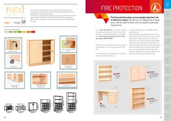 New collection Flexi stands out for a large variety of cabinets , allowing you to compose various sets of furniture both for storing toys and educational aids or to divide classroom and arrange play corners . The furniture is made of laminated chipboard in a birch tone , 18 mm thick , with ABS edge banding . An aesthetically made back sides of the cabinets enable placing them in various configurations , not only by the walls , but also in the middle of the classroom .