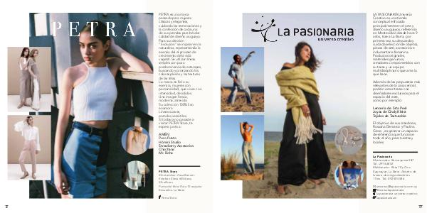 PETRA es una marca pensada para mujeres clásicas y elegantes, cuidando las terminaciones y la confección de cada una de sus prendas para brindar calidad de diseño uruguayo. Para su colección“ Evolución” se inspiran en la naturaleza, representando la esencia del el proceso de crecimiento de la vida vegetal. Se utilizan líneas simples con poca predominancia de estampas, buscando y priorizando los colores plenos y las texturas de las telas. La marca es fiel a su esencia, mujeres con personalidad, que vivan con intensidad, decididas. Una imagen fresca, moderna, atrevida. Su colección 100 % lino enamora Lineas suaves, prendas versátiles. Si todavía no pasaste a visitar PETRA Store, te espera junto a: