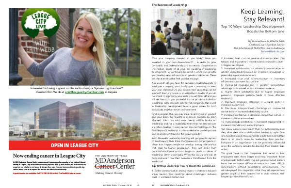 facility in League City. While this new building replaces the Bay Area location, the dedication of our
