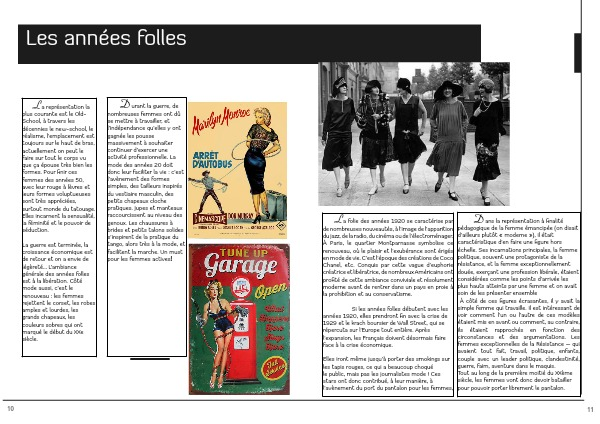 Durant la guerre, de nombreuses femmes ont dû se mettre à travailler, et l’indépendance qu’elles y ont gagnée les pousse massivement à souhaiter continuer d’exercer une activité professionnelle. La mode des années 20 doit donc leur faciliter la vie : c’est l’avènement des formes simples, des tailleurs inspirés du vestiaire masculin, des petits chapeaux cloche pratiques. Jupes et manteaux raccourcissent au niveau des genoux. Les chaussures à brides et petits talons solides s’inspirent de la pratique du tango, alors très à la mode, et facilitent la marche. Un must pour les femmes actives !