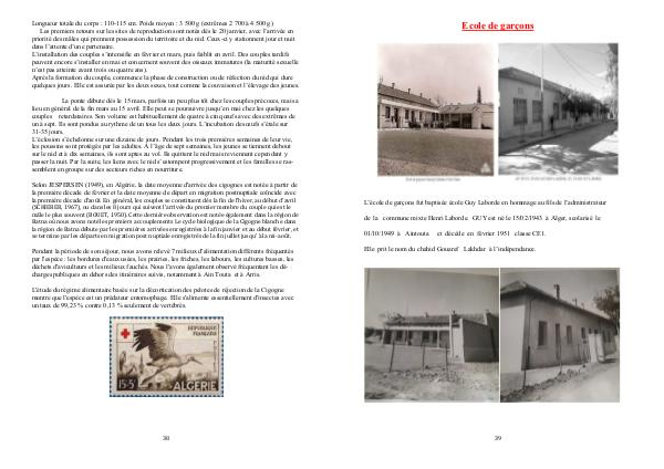Selon JESPERSEN( 1949), en Algérie, la date moyenne d ' arrivée des cigognes est notée à partir de la première décade de février et la date moyenne de départ en migration postnuptiale coïncide avec la première décade d ' août. En général, les couples se constituent dès la fin de l ' hiver, au début d ' avril( SCHIERER, 1967), ou dans les 8 jours qui suivent l ' arrivée du premier membre du couple qui est le mâle le plus souvent( BOUET, 1950). Cette dernière observation est notée également dans la région de Batna où nous avons noté les premiers accouplements Le cycle biologique de la Cigogne blanche dans la région de Batna débute par les premières arrivées enregistrées à la fin janvier et au début février, et se termine par les départs en migration post nuptiale enregistrés de la fin juillet jusqu ' à la mi-août.
