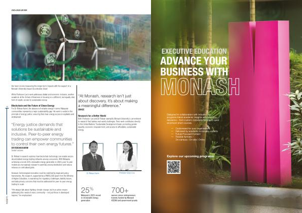 Research for a Better World Both Professor Lee and Dr Ridoan exemplify Monash University’ s commitment to research that tackles real-world challenges. Their work contributes directly to the United Nations’ Sustainable Development Goals: promoting gender equality, economic empowerment, and access to affordable, sustainable energy.
