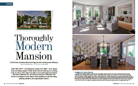match the architectural details original to the house. A circular driveway was created and the home’s curb appeal maintained with the addition of a white fence, and graceful landscaping in front of the driveway. Above, Premiere enlarged the passage between the formal living room