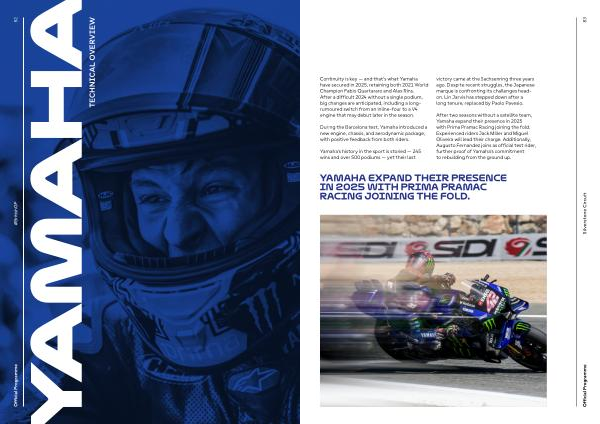 Yamaha’ s history in the sport is storied— 245 wins and over 500 podiums— yet their last victory came at the Sachsenring three years ago. Despite recent struggles, the Japanese marque is confronting its challenges headon. Lin Jarvis has stepped down after a long tenure, replaced by Paolo Pavesio.