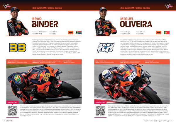 After making his Moto3™ debut in 2012 , he switched to Mahindra ’ s factory Moto3™ squad for 2013 and ’ 14 . A year in Aki Ajo ’ s Red Bull KTM Moto3™ squad in 2015 resulted in six wins and a championship challenge . Oliveira moved to Moto2™ the following year and by 2017 he was reunited with Ajo . He just fell short of beating Francesco Bagnaia to the Moto2™ World Championship in 2018 , but he moved to KTM ’ s satellite MotoGP™ team for 2019 . Nobody expected him to win two races in 2020 in Tech 3 colours , including a memorable victory at his home GP . He stepped up to KTM ’ s factory team in 2021 . Despite a brilliant win in Barcelona , he struggled badly in the second half of the season , in part due to a wrist injury suffered in free practice for the Styrian GP . He ’ s back and refreshed for 2022 to challenge for more wins .