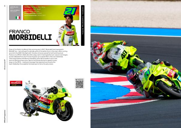 Class of the field in his Moto2 title winning year in 2017, Morbidelli has impressed in MotoGP too – but will want to rekindle some of his earlier form in the class. After coming second in the 2020 title fight with Yamaha, fortunes waned for both and he joined Pramac on a GP24 in 2024. But after a big crash in training before pre-season even began, he was sidelined from all of it and only back up to speed after a few race weekends. There were flashes of brilliance thereafter and a Sprint podium, but a new start at VR46 promises more. Back to full fitness and up to speed, he also stays on the GP24 – looking to leverage that experience as he joins the team fielded by the academy he’ s been part of since his early career.