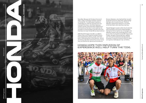 2020 World Champion Joan Mir, Luca Marini, Johann Zarco and Thailand’ s Somkiat Chantra have worked hard to deliver results, with their best in 2024 being Zarco’ s P8 at Buriram. Work is also being undertaken behind the scenes: Honda have recruited former Aprilia technical director
