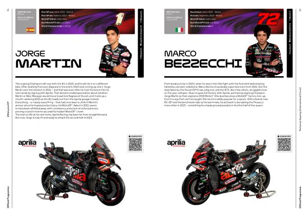 From breakout star in 2023, when he was in the title fight until the final stint before being halted by a broken collarbone, Marco Bezzecchi probably expected more from 2024. But the step taken by the Ducati GP24 was a big one, and the # 72, like a few others, struggled more on the year-old spec. Now, he goes full factory with Aprilia, partnering reigning Champion Jorge Martin as their explosive 2018 Moto3™ title duel becomes a MotoGP™ factory line-up. Cool in a way that can’ t be taught, Bezzecchi is wildly popular for a reason. With a brand-new RS-GP and the benchmark rider as his teammate, he will want to be tasting the Prosecco more often in 2025 – something he already proved possible in the first half of the season.