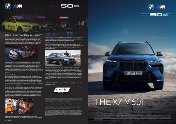 Fascination , emotion , advanced technology and international appeal – these are the attributes MotoGP™ and BMW M have in common . The thrilling top tier of motorcycle racing and the creator of high-performance automobile masterpieces make the perfect combination in a strong partnership that spans the decades . 2022 marks the 24th season of BMW M being the “ Official Car ” of MotoGP™ ”.