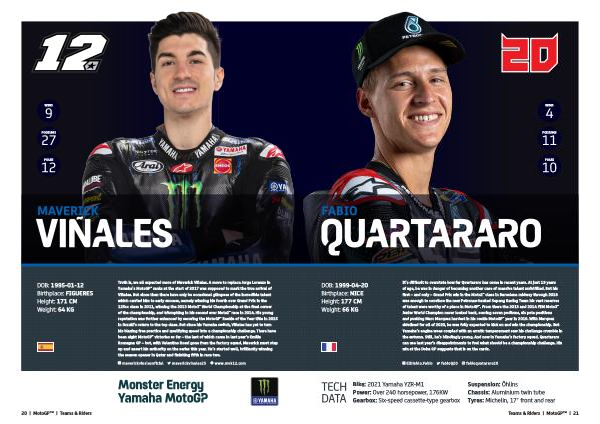 It ’ s difficult to overstate how far Quartararo has come in recent years . At just 19 years of age , he was in danger of becoming another case of massive talent unfulfilled . But his first – and only – Grand Prix win in the Moto2™ class in Barcelona midway through 2018 was enough to convince the new Petronas-backed Sepang Racing Team his vast reserves of talent were worthy of a place in MotoGP™ . From there the 2013 and 2014 FIM Moto3™ Junior World Champion never looked back , scoring seven podiums , six pole positions and pushing Marc Marquez hardest in his rookie MotoGP™ year in 2019 . With Marquez sidelined for all of 2020 , he was fully expected to kick on and win the championship . But Yamaha ’ s engine woes coupled with an erratic temperament saw his challenge crumble in the autumn . Still , he ’ s blindingly young . And now in Yamaha ’ s factory squad , Quartararo can use last year ’ s disappointments to fuel what should be a championship challenge . His win at the Doha GP suggests that is on the cards .