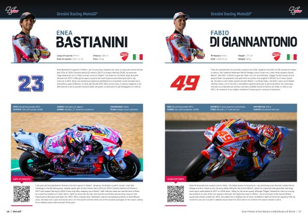 Fabio Di Giannantonio caused a stir in 2016 – his debut season in Grand prix – by outshining more fancied rookies Nicolo Bulega and Aron Canet across 18 races while riding for the Gresini Moto3™ squad . An expected championship challenge never quite materialised in 2017 or 2018 when riding for the same squad , although ‘ Diggia ’ showed his class by scoring two podiums in each of his two seasons riding for the Speed Up team in Moto2™ . He moved back to the Gresini Moto2 squad and a Kalex chassis for 2021 , but aside from a brilliant win at Jerez , he failed to fight at the front regularly . Still , he received a call up to Gresini ’ s satellite Ducati team for 2022 where he contests the season aboard a GP21 .