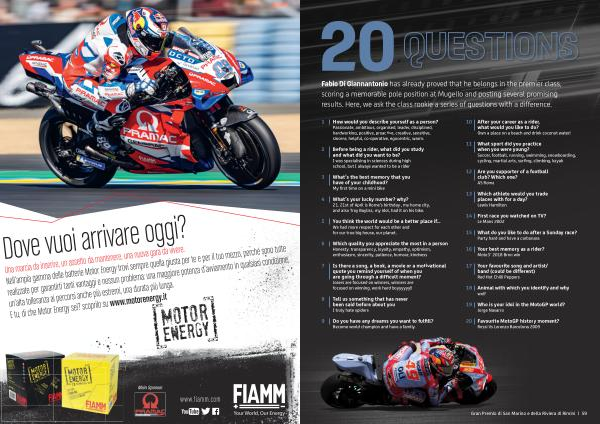 Fabio Di Giannantonio has already proved that he belongs in the premier class , scoring a memorable pole position at Mugello and posting several promising results . Here , we ask the class rookie a series of questions with a difference .