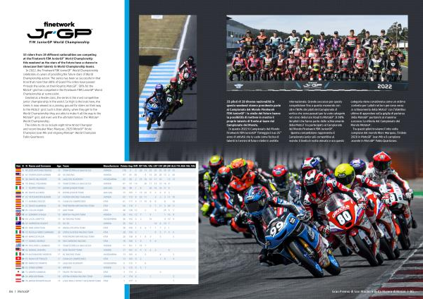 In 2022 , the Finetwork FIM JuniorGP™ World Championship celebrates 25 years of providing the future stars of World Championship action . The series has been so successful in that time that more than 80 % of Grand Prix riders have passed through the series on their Road to MotoGP™ . 90 % for the Moto3™ grid has competed in the Finetwork FIM JuniorGP™ World Championship at some point . Created as a feeder class , the series is the most competitive junior championship in the world . So high is the level here , the series is now viewed as a proving ground for riders on their way to the Moto3™ grid . Such is their ability , when they get to the World Championship they are able to make it all the way to the MotoGP™ grid , and even win the ultimate honour : the MotoGP™ World Championship . The riders to do so include eight-time World Champion and record-breaker Marc Marquez , 2020 MotoGP™ World Champion Joan Mir and reigning MotoGP™ World Champion Fabio Quartararo .