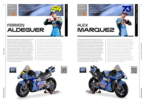 Fermín Aldeguer destacó desde las categorías base con una progresión rápida y constante. Sus primeros éxitos en MiniGP y la Cuna de Campeones dieron paso a buenos resultados en la European Talent Cup, donde los podios regulares confirmaron su potencial. El salto al Campeonato de Europa de Moto2™ resultó decisivo. Dominó en su debut, ganando las seis primeras carreras y asegurando el título. Ese rendimiento le abrió las puertas del Mundial de Moto2™, primero como sustituto y después a tiempo completo. La evolución constante desembocó en un destacado 2023. La victoria en Silverstone inició una gran racha final, con cuatro triunfos consecutivos que le llevaron al tercer puesto del campeonato. Su debut en MotoGP™ en 2025 con Gresini Racing tuvo impacto inmediato. Una victoria en Indonesia le otorgó el título de Rookie del Año. De cara a 2026, Aldeguer continúa con Gresini y aspira a más triunfos pese a una pretemporada irregular.