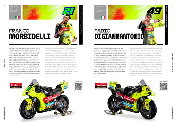 Fabio Di Giannantonio built momentum through European Moto3™ and the Red Bull MotoGP Rookies Cup, emerging as a title contender in 2015. A move to Gresini followed, where steady progress delivered multiple podiums and a breakthrough season in 2018, finishing second overall with his first Grand Prix victories. Promotion to Moto2™ brought immediate impact. Podium finishes secured Rookie of the Year honours and set up a long awaited first win at Jerez in 2021, earning a step to MotoGP™. His premier class debut in 2022 showed promise, highlighted by pole position at Mugello. A late season surge in 2023 transformed his career. A maiden MotoGP™ podium was followed by a first victory in Qatar. A switch to VR46 followed. Injury disrupted 2024, but resilience returned in 2025 with four podium finishes. Remaining with Pertamina Enduro VR46 Racing Team, Di Giannantonio targets race wins again in 2026.