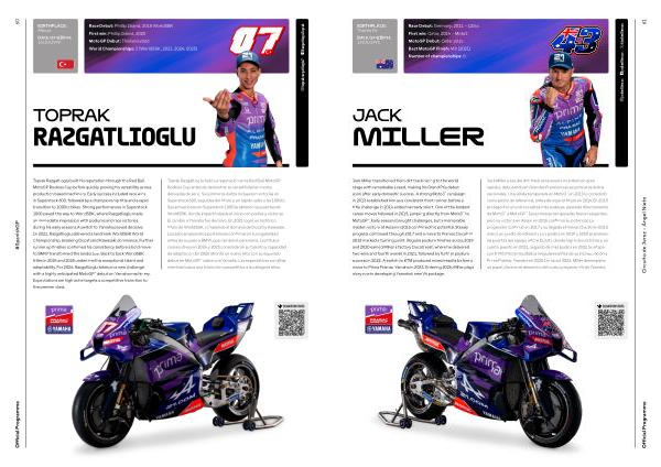 Jack Miller transitioned from dirt track racing to the world stage with remarkable speed, making his Grand Prix debut soon after early domestic success. A strong Moto3™ campaign in 2013 established him as a consistent front runner, before a title challenge in 2014 ended narrowly short. One of the boldest career moves followed in 2015, jumping directly from Moto3™ to MotoGP™. Early seasons brought challenges, but a memorable maiden victory at Assen in 2016 confirmed his potential. Steady progress continued through 2017 and a move to Pramac Ducati in 2018 marked a turning point. Regular podium finishes across 2019 and 2020 earned Miller a factory Ducati seat, where he delivered two wins and fourth overall in 2021, followed by further podium success in 2022. A switch to KTM produced mixed results before a move to Prima Pramac Yamaha in 2025. Entering 2026, Miller plays a key role in developing Yamaha’ s new V4 package.