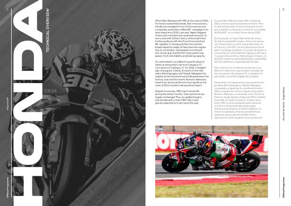 When Marc Marquez left HRC at the close of 2023, the future looked fairly bleak. But in two seasons, Honda has managed to turn its fortunes around completely, and enters a MotoGP™ campaign in its best shape since 2019. Last year Japan’ s biggest motorcycle manufacturer surprised everyone. It won a race with Johann Zarco, and scored three further podiums with the Frenchman and Joan Mir. Updates it introduced after the summer break helped its stable of riders become regular top six contenders. And despite a continued lack of rear grip, the RC213V improved its top speed, front end stability and braking capacity.