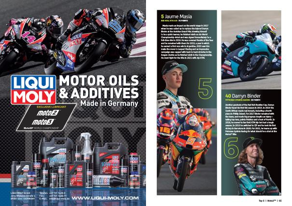 Another graduate of the Red Bull Rookies Cup , Darryn Binder faced his first full season in 2015 . In 2016 the South African made real inroads , including a fourth place in Phillip Island . For 2017 Binder remained with the team , and made big progress despite an injury – taking top tens , points finishes and a best of fourth . In 2018 , he moved to Red Bull KTM Ajo but had a tough season . In 2019 he switched to CIP and he took his first victory in Barcelona in 2020 . For 2021 , he teams up with Petronas Sprinta Racing for what should be a shot at the Moto3™ title .