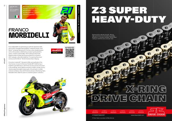 Promotion to MotoGP™ followed in 2018, earning Rookie of the Year honours. A move to Petronas Yamaha SRT in 2019 set up a breakthrough 2020 season, with three race wins and second overall in the standings. Injury halted momentum in 2021 and later factory Yamaha seasons brought mixed results. A Ducati switch in 2024 restored confidence. Now with Pertamina Enduro VR46 Racing Team, Morbidelli enters 2026 focused on consistent podium contention.