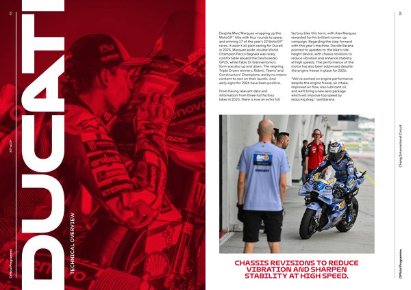 Despite Marc Marquez wrapping up the MotoGP™ title with four rounds to spare, and winning 17 of the year’ s 22 MotoGP™ races, it wasn’ t all plain sailing for Ducati in 2025. Marquez aside, double World Champion Pecco Bagnaia was rarely comfortable aboard the Desmosedici GP25, while Fabio Di Giannantonio’ s form was also up and down. The reigning Triple Crown winners, Riders’, Teams’ and Constructors’ Champions, are by no means content to rest on their laurels. And early signs for 2026 have been positive.