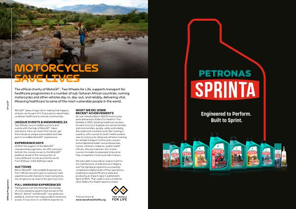 The official charity of MotoGP™, Two Wheels for Life, supports transport for healthcare programmes in a number of sub-Saharan African countries, running motorcycles and other vehicles day-in, day-out, and reliably, delivering vital, lifesaving healthcare to some of the most vulnerable people in the world.