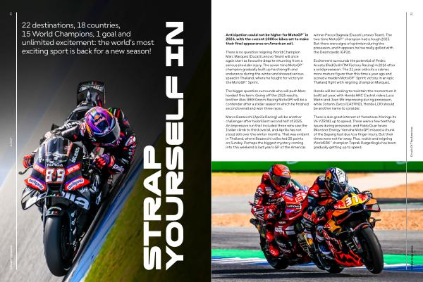 Marco Bezzecchi( Aprilia Racing) will be another challenger after his brilliant second half of 2025. An impressive run that included three wins saw the Italian climb to third overall, and Aprilia has not stood still over the winter months. That was evident in Thailand, where Bezzecchi collected 25 points on Sunday. Perhaps the biggest mystery coming into this weekend is last year’ s GP of the Americas winner Pecco Bagnaia( Ducati Lenovo Team). The two time MotoGP™ champion had a tough 2025. But there were signs of optimism during the preseason, and it appears he has really gelled with the Desmosedici GP26.